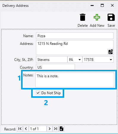 Addresses can be added to the list with notes [1], and can also be marked as ‘Do Not Ship’ [2] (blacklist) .