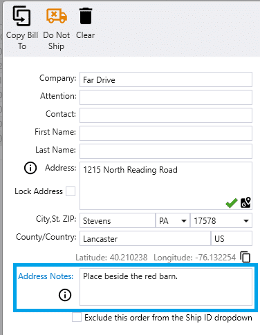 Address notes will be shown on the “Ship To” pop up, where they can be edited as well.