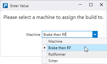 In addition to machines, the dialog will show any Machine Groups that have been set up. Selecting a machine group will cause the order or build to be assigned to all machines that are in the group in the order that they are arranged.