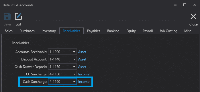 Cash rounding amounts will be tracking in the account assigned to “Cash Surcharge” in the Default GL Accounts.