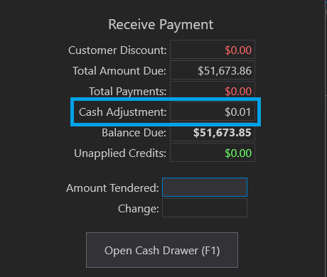If applied, the cash adjustment will be shown in the receive payment screen.