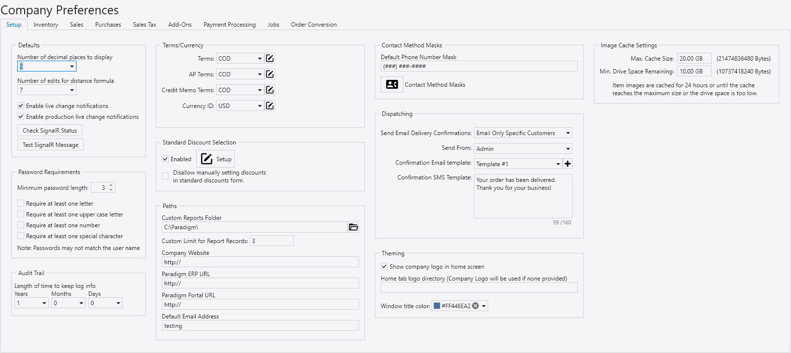 This FAQ will go over company preferences in Paradigm. To apply company preference changes, Paradigm will need to be closed and reopened.