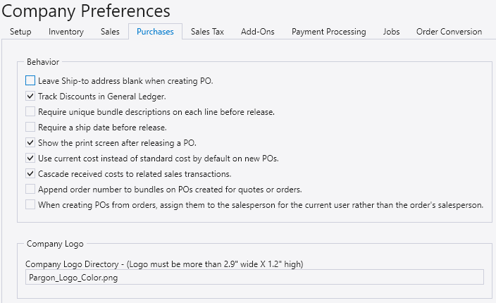 - Show the Print screen after releasing a PO – Shows the print screen after releasing a purchase order.