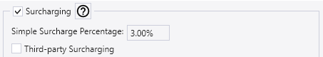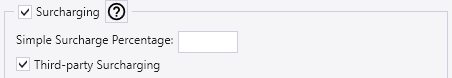 To use Simple Surcharging without any Third-party integration, enter a surcharge percentage in the Simple Surcharge field and leave the Third-party Surcharging checkbox unchecked. Paradigm will then apply the internal percentage to all in-system transactions, and Third-party surcharging will not be used.