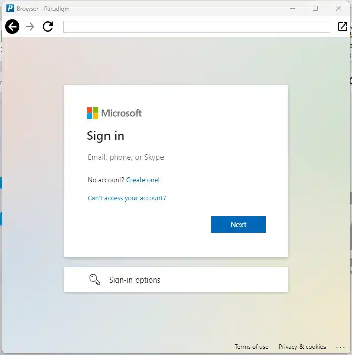 If Microsoft is selected, the external browser will be directed to a Microsoft login page. Use the email account credentials to login.