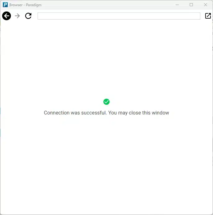 After the login process is complete the following message will appear and the window can be closed: Connection was successful. You may close this window