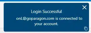 A message will appear if the login was successful: Login Successful – [emailaddress] is connected to your account.