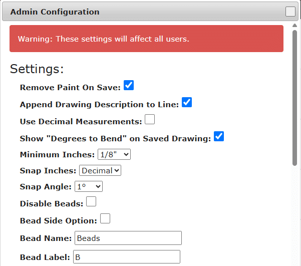- Advanced Config – Only available from the Drawing Admin.